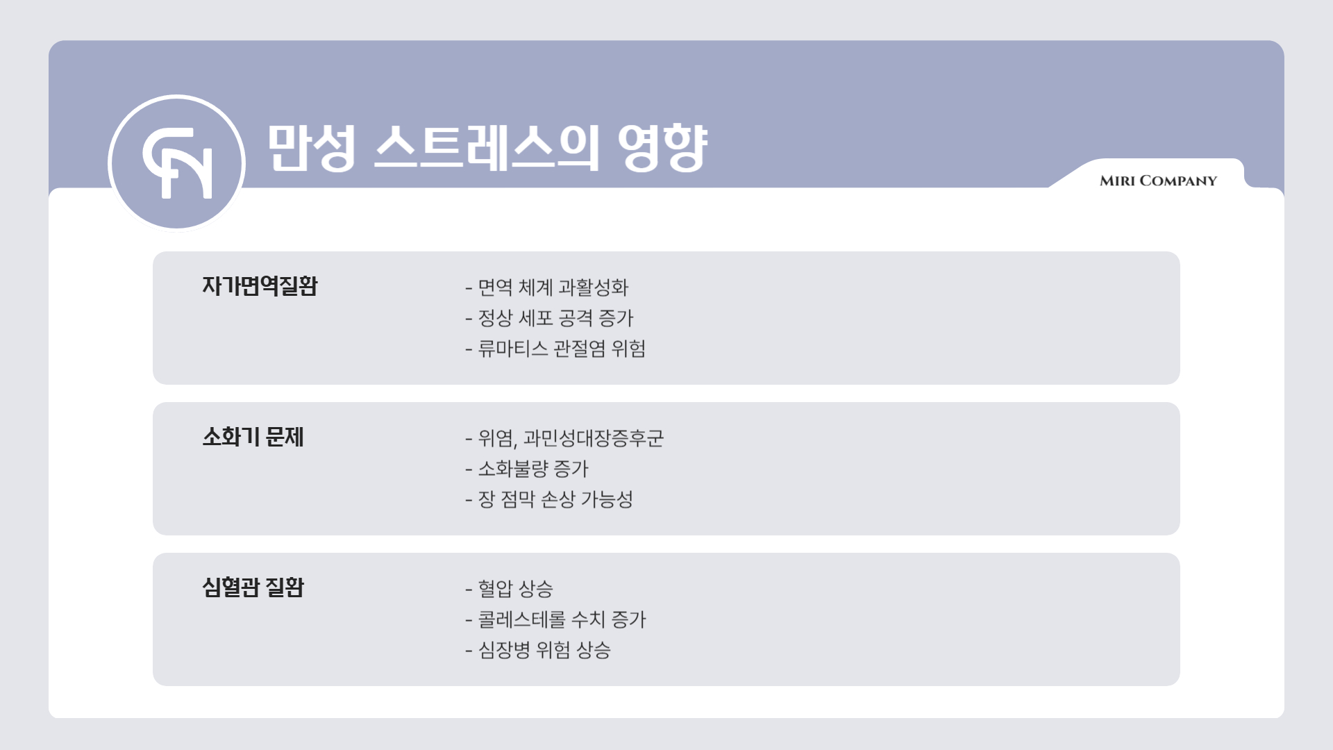 이처럼 스트레스는 단순한 감정적인 문제가 아니라, 전신 건강에 영향을 미치는 중요한 요소입니다.